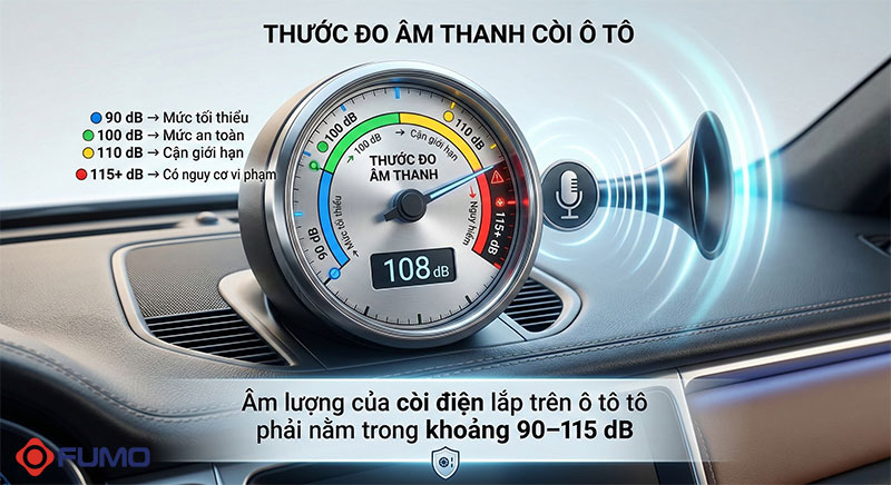 Việc đo âm lượng của còi điện lắp trên ô tô được thực hiện bằng thiết bị chuyên dụng, theo khoảng cách và môi trường kiểm tra theo quy chuẩn kỹ thuật. Nếu âm thanh vượt quá mức cho phép, phương tiện có thể không đạt tiêu chuẩn đăng kiểm và chủ xe có nguy cơ bị xử phạt theo quy định.