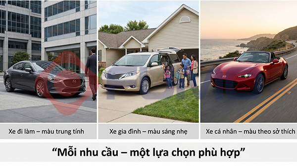 Bên cạnh yếu tố tâm lý, màu sắc còn tác động đến cách người sử dụng nhìn nhận chiếc xe của mình. Một màu xe phù hợp thường tạo cảm giác gắn bó, giúp người lái tự tin hơn mỗi khi cầm vô lăng. Khi cảm giác này được duy trì ổn định, người sử dụng sẽ ít lo lắng, từ đó hạn chế được những cảm giác bất an không cần thiết trong quá trình di chuyển.